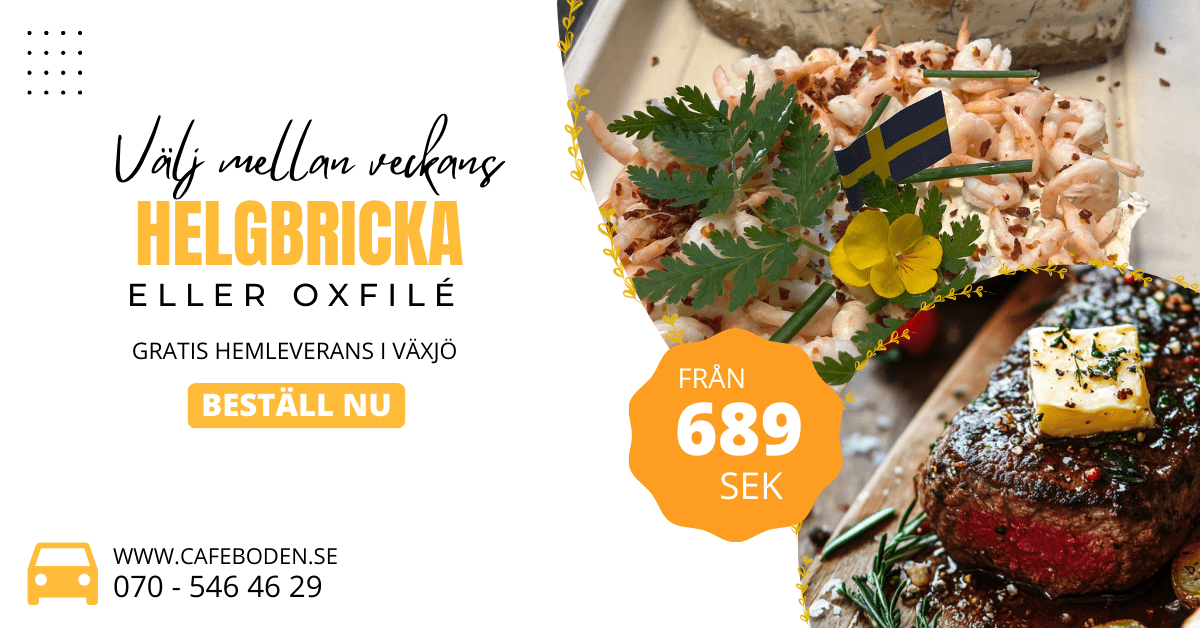 Vi på Cafeboden försöker att göra vad vi kan för att minska vår miljöpåverkan så mycket som möjligt, genom att köra ut leveranserna med vår elbil, använda återvinningsbara uppläggnings artiklar, minska plasten och handla svenskt och närproducerat när det går.